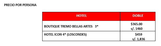 • Traslados Aeropuerto – Hotel – Aeropuerto.
